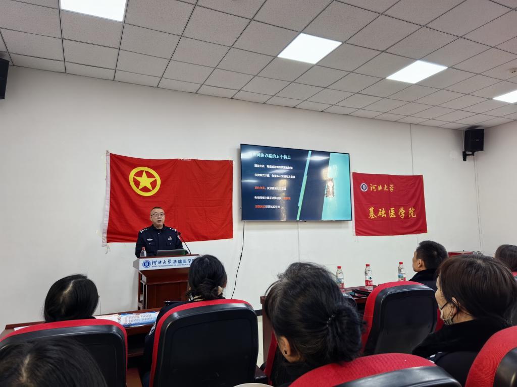 为有效遏制校园电信网络诈骗案件的发生,切实增强全校区师生的反诈意识,提升师生识骗、防骗的能力,营造安全和谐的校园环境,12月25日,医学部组织开展裕华路校区“平安校园 青春无诈”活动。医学部副主任张龙、莲池区公安分局反诈中心队长潘非、副队长孙雅薇、相关部门工作人员,以及裕华路校区各学院教师和学生代表共计200余人参与。